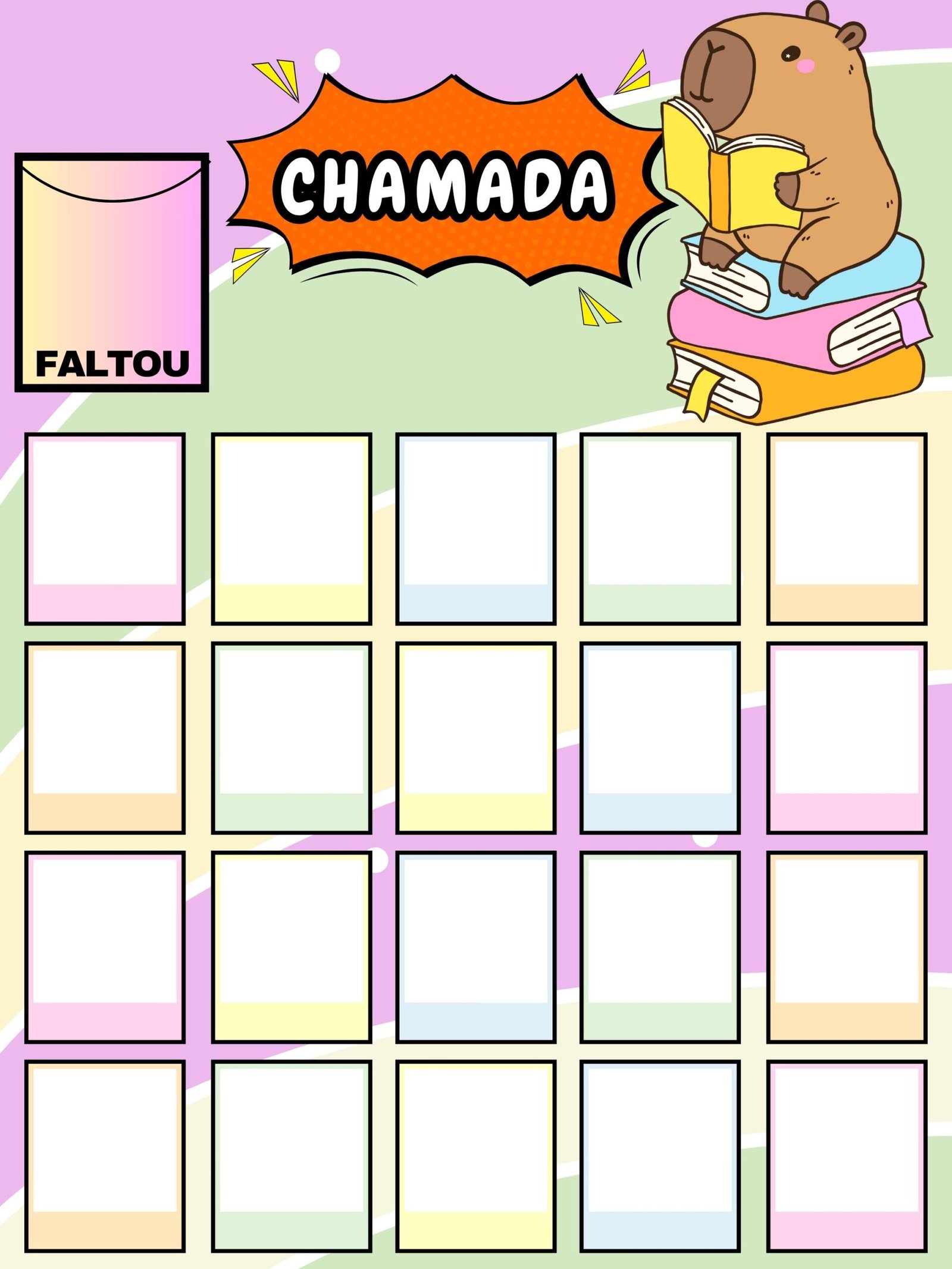 Torne o momento da chamada mais divertido e organizado com a Chamadinha no tema Capivara, ideal para a rotina da Educação Infantil e anos iniciais.