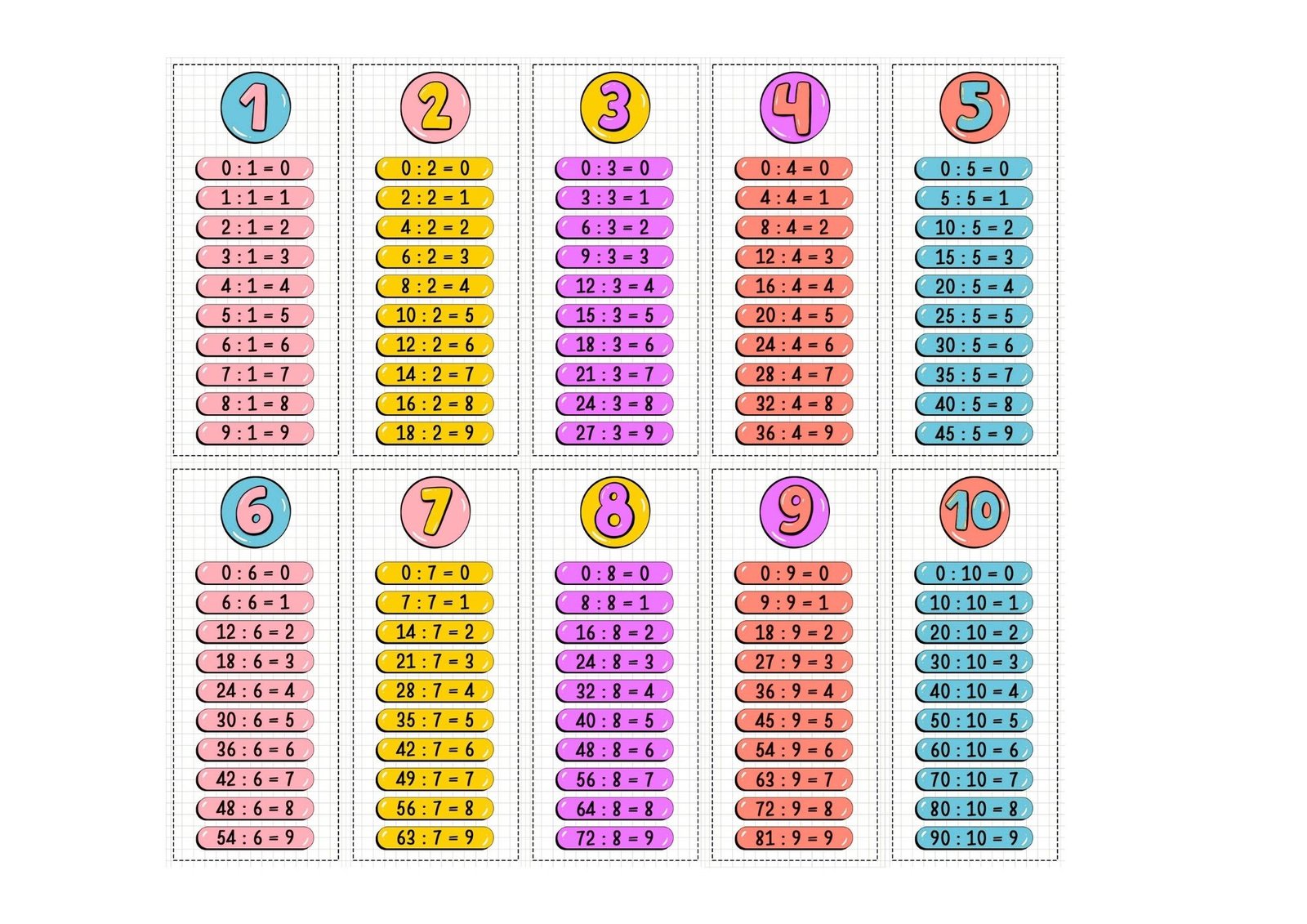 ✅ Tabuada de divisão do 1 ao 10